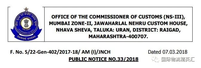 2018年4月1日起,所有出口至印度港口的货物(含印度内陆港),提单和舱单必须显示以下信息: