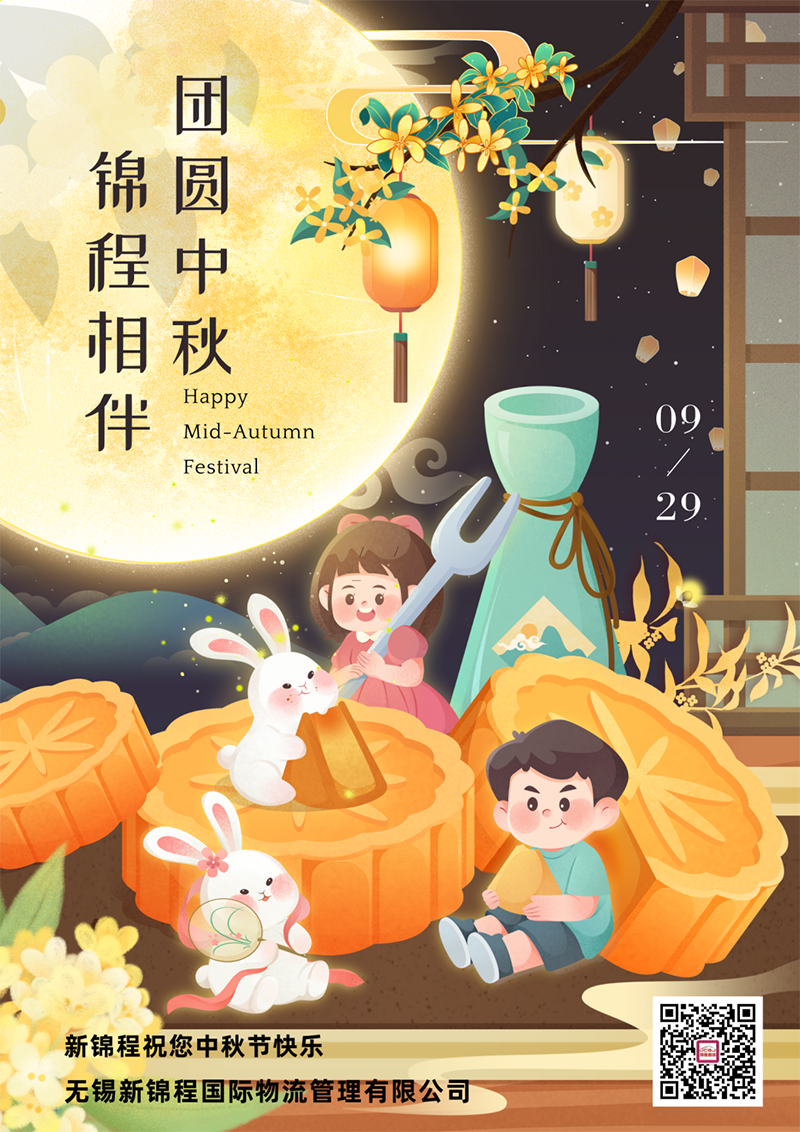 中秋佳节来临,无锡新锦程国际物流管理有限公司全体成员向您送上最诚挚的祝福和美好的祝愿。让我们一起沉浸在这浓浓的中秋团圆情怀中,感受那份温暖和幸福。