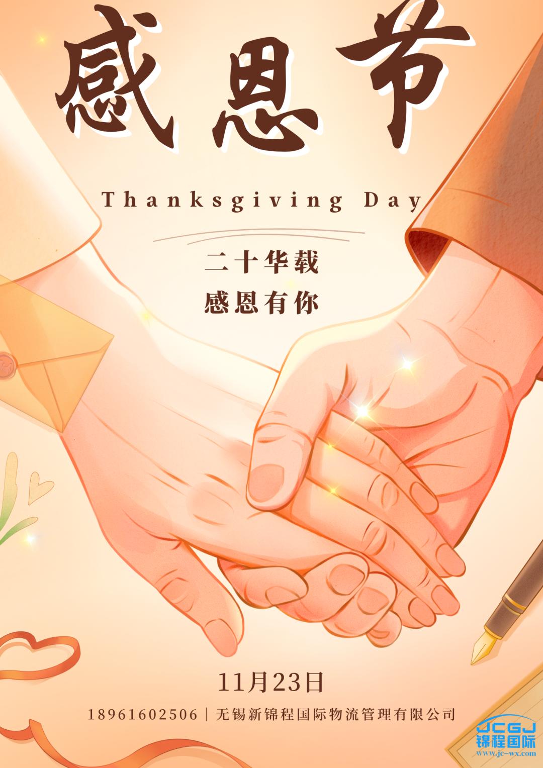 今天是感恩节,作为新锦程团队的一员,我代表整个团队向广大客户表达最衷心的感谢和祝福。在这个特别的时刻,我们想借此机会向您表达我们对您一直以来的支持和信任的深深感激之情。