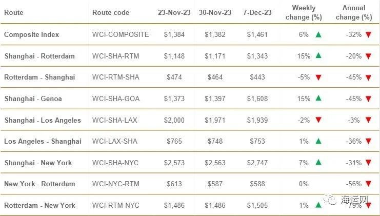 根据最新数据,德路里世界集装箱综合运价指数(WCI)上涨了6%。上海至欧洲和地中海的运费都出现了大幅上涨,涨幅达到15%。全球海运业的减舱效应持续反映在市场上,淡季时的运价也开始回稳。船公司在第四季度的营收和利润可能会受到影响并减少。多家货代从业者表示,欧洲的库存正在逐步调整到健康水平,再加上船公司的抽船和减航措施,12月中旬部分船舶已经出现满舱的情况,这推动了运价连续两周的上涨。此前,多家船公司宣布将于12月15日调升FAK费率,最近又调整至1月1日,但运价再次上涨,涨幅达到300~500美元,较之前的2-5成有所增加。