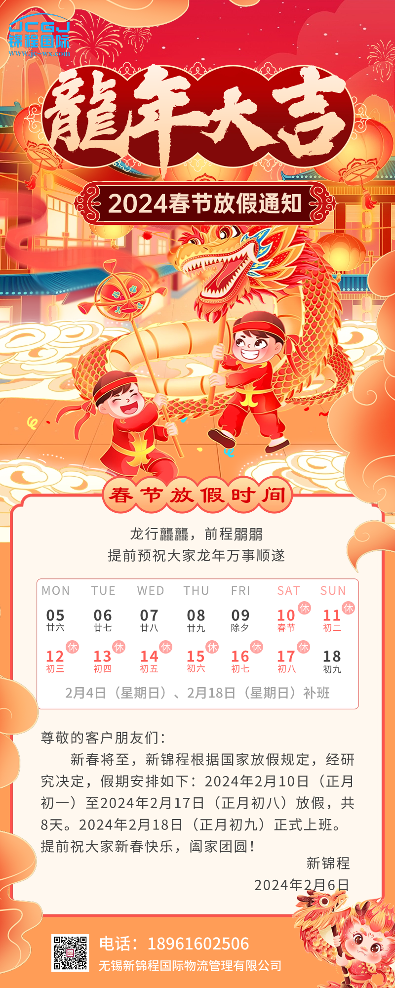 龙行龘龘|新锦程2024年春节放假通知
