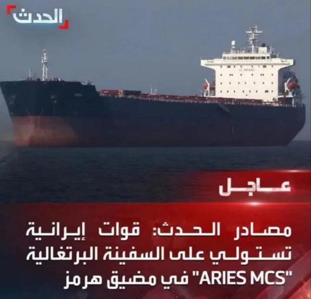 “当地时间4月13日,伊朗官方通讯社(IRNA)报道称,伊斯兰革命卫队(IRGC)的特种海军部队在霍尔木兹海峡附近扣押了一艘与以色列有关的“MCS Aries”集装箱船。伊通社的报道称,目前该船正前往伊朗海域。”