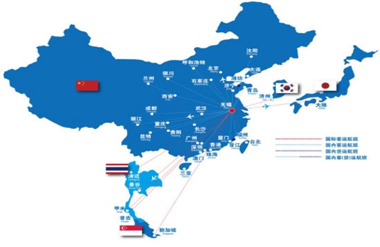 无锡—北京线、无锡—深圳线、无锡—成都线、无锡—西安线、无锡—大连线
