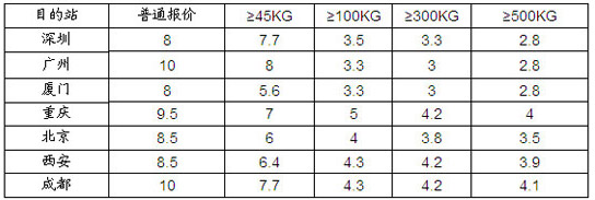 价格优势:比空运货代更平价,比一体物流更便捷!部分报价如下
