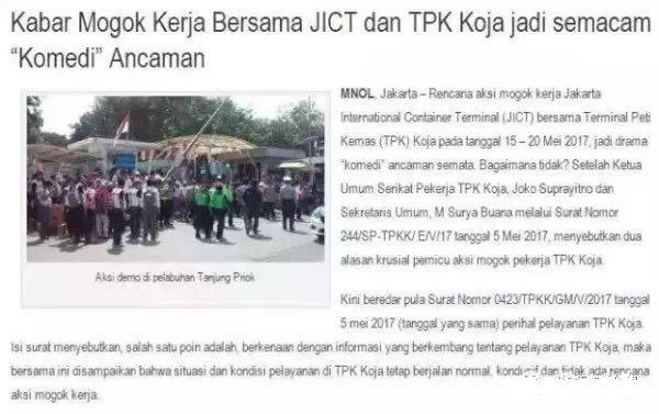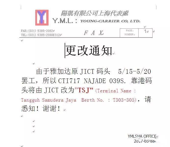 5月15日-5月20日,雅加达JICT码头工人(雅加达国际集装箱码头)将进行罢工。为此,“海运订舱网”收到船公司阳明海运于昨日发布的“更改靠港码头的紧急通知”。