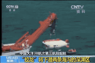 当地时间23日7时9分(北京时间5时9分),“蛟龙”号布放入水。