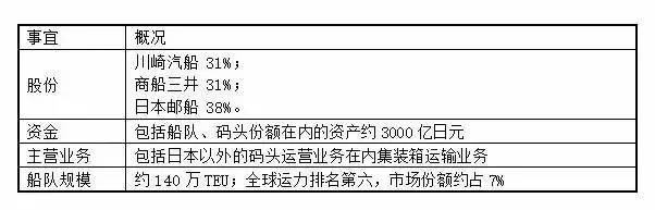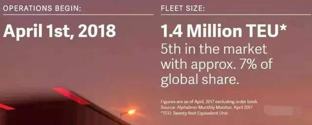 合资企业将为全球第六大集装箱公司,于2018年4月开始运作。合并以后,新的公司将拥有140万TEU的船队规模,占有7%的全球市场份额,每年可获益约1100亿日元。